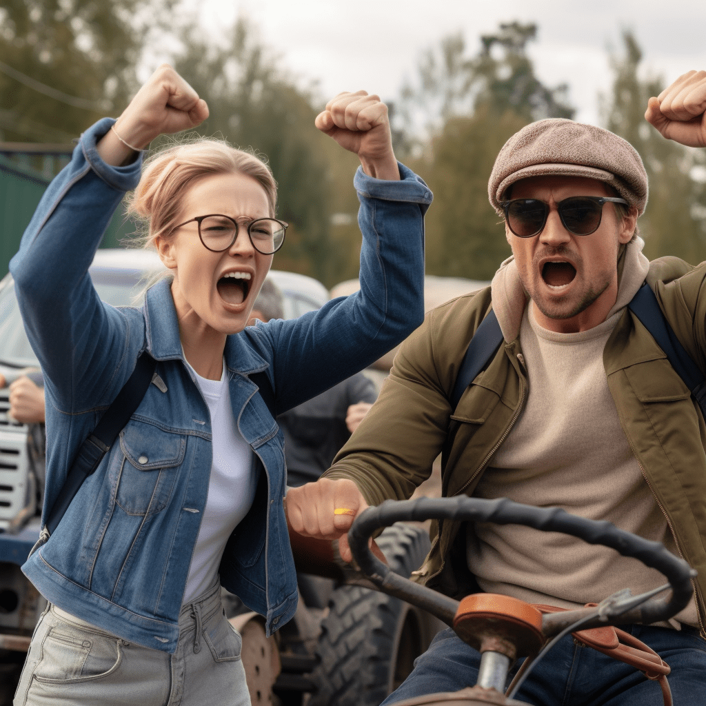 As the lessons continued, Laura honed her Italian driving skills and embraced the language of hand gestures. One day, during a particularly challenging lesson, she found herself stuck behind a slow-moving tractor on a narrow road. Desperate to pass, Laura sped up and wildly overtook the tractor, not realizing her friends Hugo and Margot were cycling up ahead.