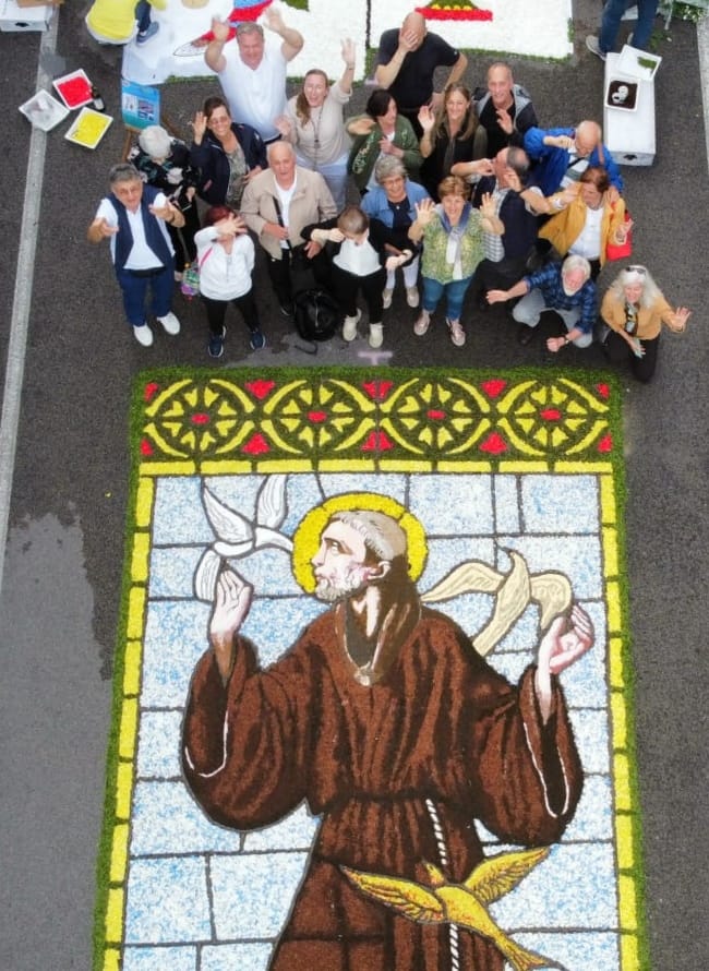 It was a bright Friday morning, when the daring Pacianesi, a motley crew of locals and stranieri, congregated at the Church of Maria Della Stella. Their mission was of great importance: they were to venture to Cervaro and create a floral masterpiece in the likeness of San Francesco during the National Infiorata of Cervaro. To accomplish this feat, they had secured a bus – one that had certainly seen better days, but it held a certain tacky charm that made it a perfect fit for the adventurous spirit of the group.